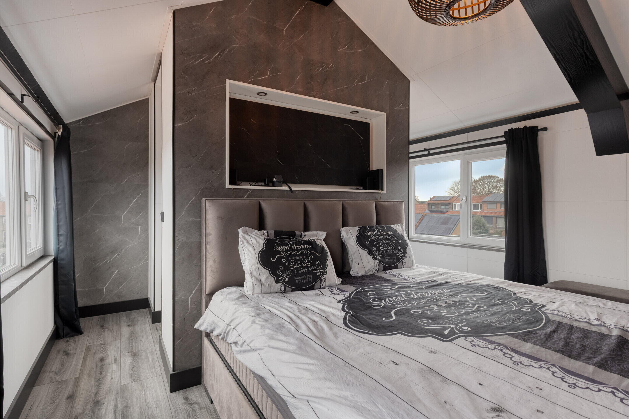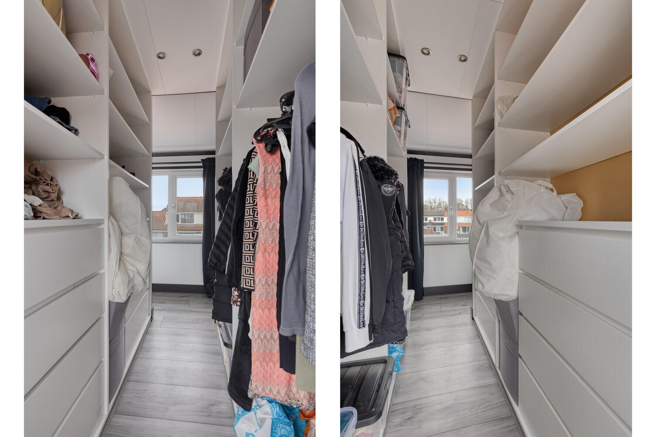 Via een vaste trap bereik je de tweede verdieping. Hier vind je de derde slaapkamer, een lichte en ruime kamer dankzij de dakkapel aan beiden. Daarnaast is achter het bed een ruime inloopkast voor al je kleding en accessoires.
