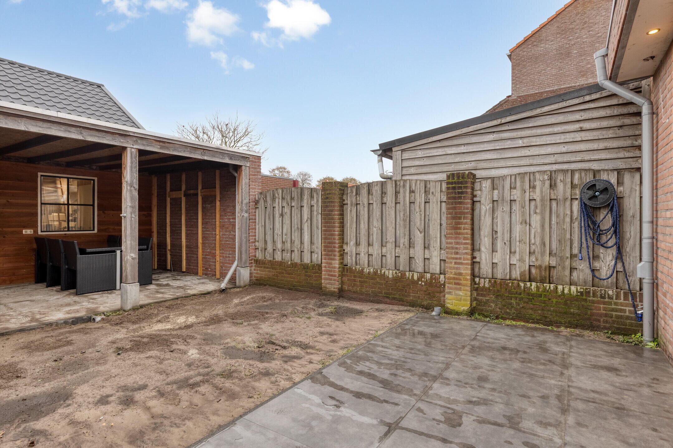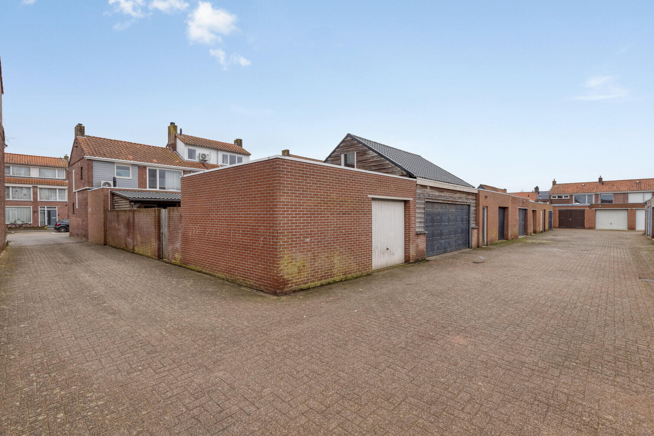 De achtertuin is (deels) betegeld en beschikt over een overkapping. De basis is goed, en met een beetje extra liefde en aandacht maak je hier een heerlijke buitenruimte van. Waar je waarschijnlijk ook heel vrolijk van wordt is de dubbele garage voorzien van een automatische deur, met een bergzolder (vlizotrap), water aansluiting en wc. Hier kunnen 2 auto’s binnen staan, of 1 natuurlijk dan houd je ruimte over voor wat fietsen en andere voorwerpen.