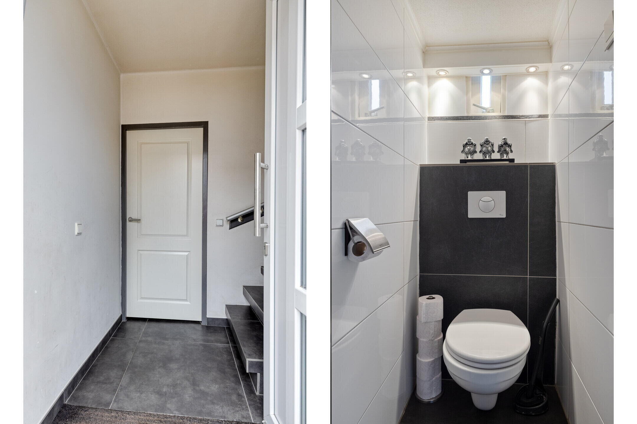 De woning is bereikbaar via een onderhoudsvriendelijke voortuin en parkeren kan eenvoudig aan de straat. Via de voordeur kom je binnen in de hal, waar je toegang hebt tot het moderne toilet, de trapopgang naar de eerste verdieping en uiteraard de woonkamer.